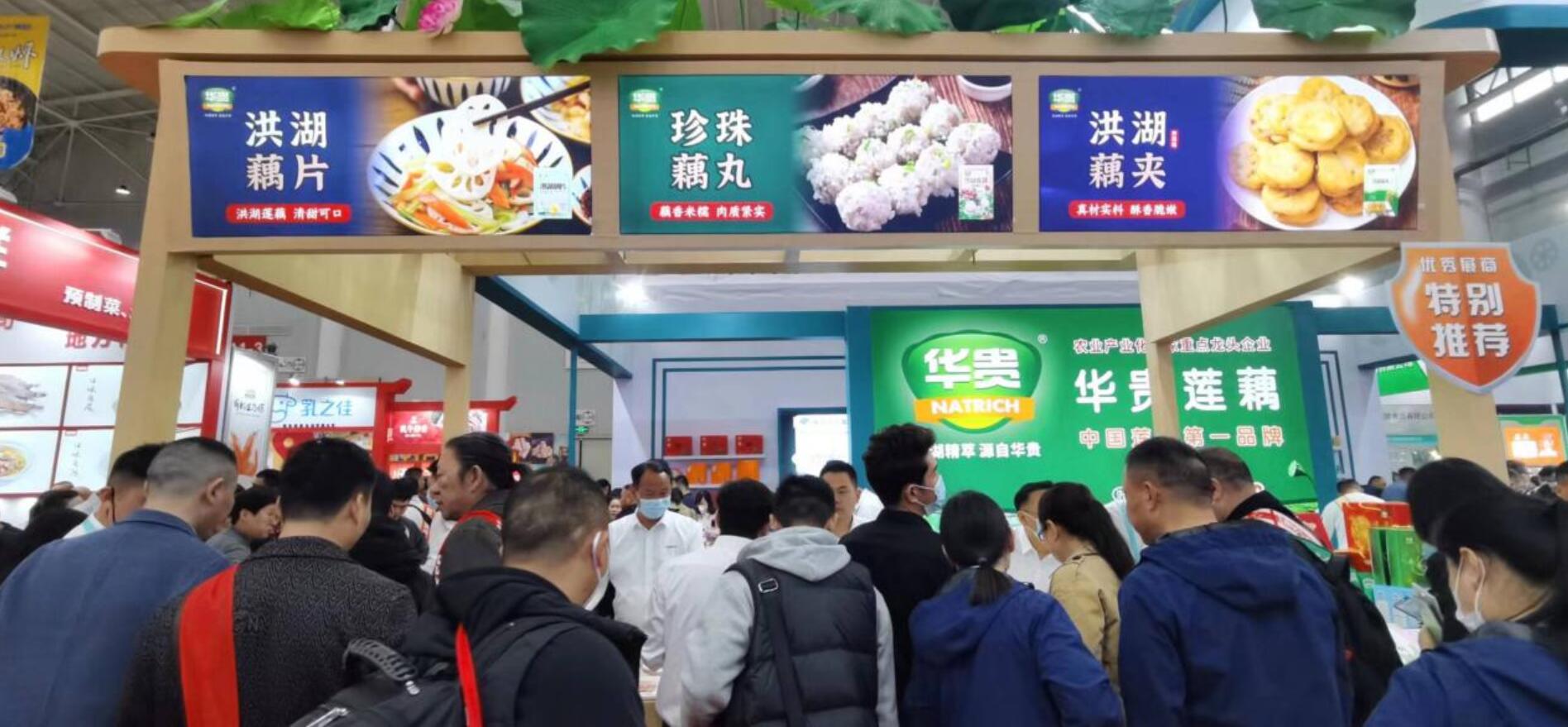 湖北華貴食品有限公司是一家集水生蔬菜種植、研發(fā)、生產(chǎn)和銷售于一體的農(nóng)業(yè)產(chǎn)業(yè)化國家級重點(diǎn)龍頭企業(yè)。本次展會上,華貴公司用108個平方的展位來推介產(chǎn)品,精心設(shè)計的燈箱展牌再現(xiàn)了洪湖“魚米之鄉(xiāng)”接天蓮葉無窮碧、映日荷花別樣紅的生態(tài)美景,包裝精美的洪湖藕湯、泡藕帶、泡藕尖、雞肉藕夾、珍珠藕丸、洪湖藕餅、洪湖魚頭等系列預(yù)制菜產(chǎn)品琳瑯滿目、活色生香,吸引了眾多客商和市民的眼球。